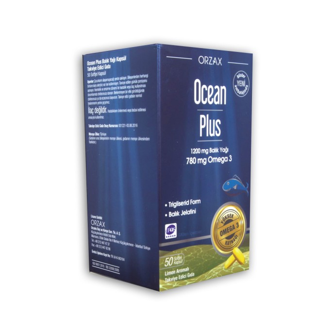 Kullanım Önerisi:Günde 1-2 kapsül tüketilmesi önerilir. Ocean Plus bileşiminde; ağır metallerden uzak, temiz ve soğuk sularda yaşayan; küçük cins balıkların gövde yağları kullanılmaktadır. Balıklardan elde edilen yağlar tamamen mekanik yöntemler kullanılarak; moleküler distilasyon ve yüksek deodorizasyon teknikleri ile saflaştırılır. Üretim esnasında kimyasal çözücüler kullanılmaz, sadece mekanik yöntemler tercih edilir. Ocean Plus’ın kalitesi ve içerik garantisi, International Fish Oil Standards (IFOS) tarafından analiz edilir. Beslenme Konseyi (CRN), Dünya Sağlık Örgütü (WHO), Küresel EPA ve DHA Organizasyonu (GOED) tarafından belirlenen limit değerlerine göre test edilen Ocean Plus her üretim serisinde; saflık, tazelik, içerik garantisi ve kalite parametrelerince yeterli bulunur, bu sayede IFOS 5 yıldız kalite onayına sahiptir.